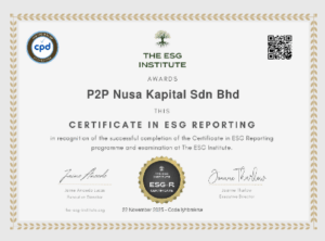 P2P Nusa kapital sdn bhd has completed the ESG Reporting Programme provided by The ESG Institute.