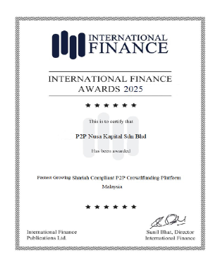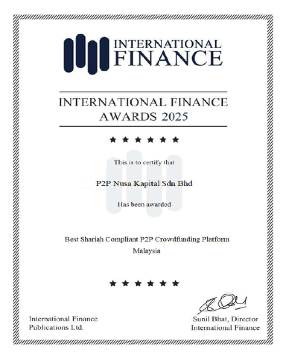 Nusa Kapital has been Recognised by International Finance as Best P2P Shariah Lending Platform and Fastest Growing P2P Fintech Platform of the Year 2025.Through a well-governed evaluation process, we were honoured to receive these two (2) international awards, becoming the world’s first P2P Shariah-compliant platform to achieve this recognition. https://awards.internationalfinance.com/