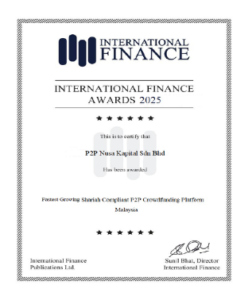 Nusa Kapital telah diiktiraf oleh International Finance sebagai Platform Pembiayaan P2P Patuh Syariah Terbaik dan Platform Fintech P2P Paling Pesat Berkembang bagi Tahun 2025. Melalui
